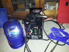 Helmet x 4 and gloves x 3 pair, for welding.